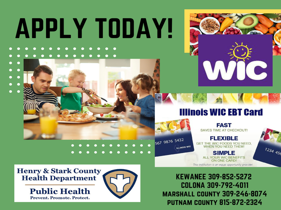 For more information on the services call the department at 309-852-5272 (Kewanee) or 309-792-4011(Colona) or visit our website to apply at https://www.henrystarkhealth.com/FormCenter/WIC-10/WIC-Application-Form-65.