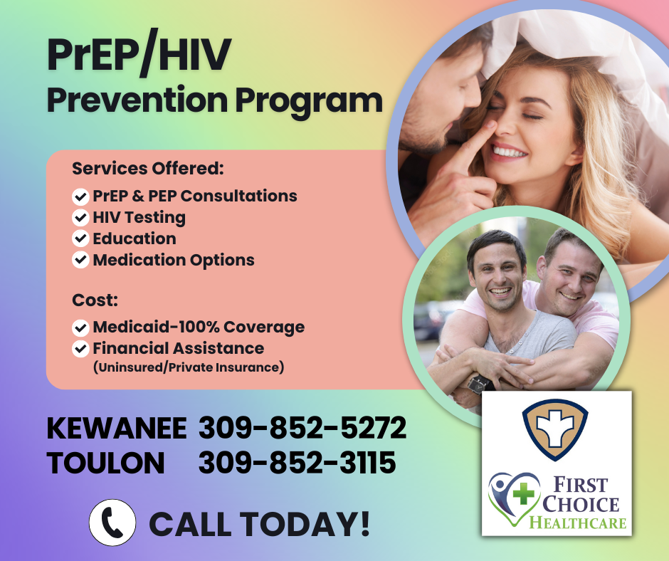 The Henry and Stark County Health Departments and their First Choice Healthcare Clinics in Kewanee and Toulon are reminding local residents of their PrEP/HIV Prevention program and services.