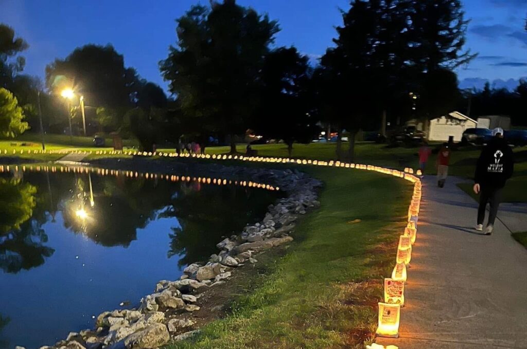 Locally, luminaries can be purchased at $10 for a bag luminary, $25 for a floating luminary, and $50 for a torch – while supplies last for torches. Luminaries are for purchase until 8 p.m. on Saturday Aug. 23,. For questions and information on how to purchase luminaries contact Marcia Dragolovich, the luminaria chair, at 309-714-4087.