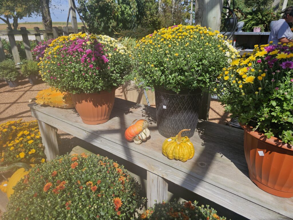 Well-known to area residents, Sunnyfield Greenhouse, located at 2440 E. 2550th St., Galva, offers homegrown mums, pumpkins, gourds, fall ornamental plants and potted fall arrangements. The hours are Monday through Saturday, 9 a.m. to 6 p.m. and Sunday 10 a.m. to 5 p.m.