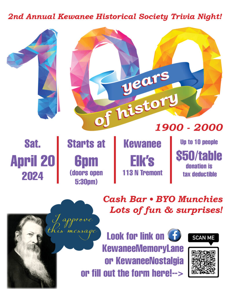 On Saturday, April 20, the community is invited to a night of historical fun at the Elks Club, located at 113 N Tremont St. The Kewanee Historical Society is bringing back its trivia night for the second year.