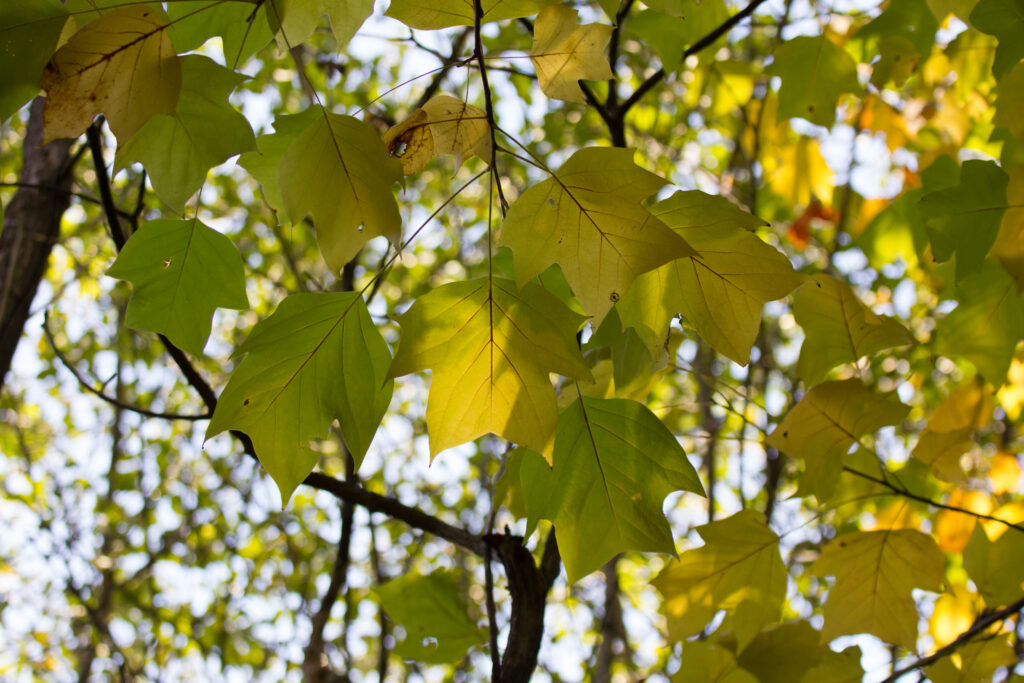 In 2020, this tulip tree was a seedling, just a few inches tall. By 2024, the author could walk beneath its branches. (Kewanee, 2024). [Photo by Jill Bartelt]