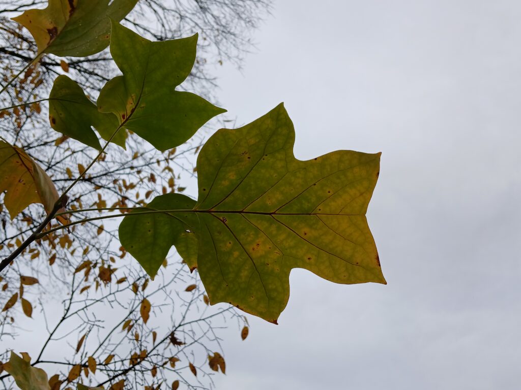 This majestic tulip tree was just a tiny sprig when, in the 1990s, the author’s dad rescued it from a window well and planted it near the family home. (Washington, 2020). [Photo by Jill Bartelt]