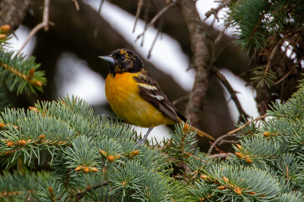 This year, I saw my first Baltimore oriole visitors on April 27, a Sunday. Between one thing and the next, I never found time to photograph them. I tried to content myself by thinking, “I still get to see them. I still get to hear them singing. I have oriole photos from past years. I’ll have more time next year.” All of that was true, but it wasn’t enough. Light is always changing; individual birds are born, then die. A moment, once lost, can never be replicated.