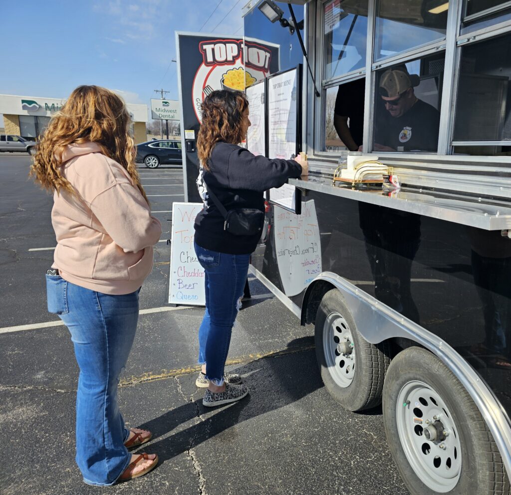 Top That food trailer opened its window for business in Kewanee on Tuesday at the Menards parking lot. This wasn’t the first visit for the food trailer and Kewanee residents have embraced the unique menu. [Photo by Susan DeVilder]