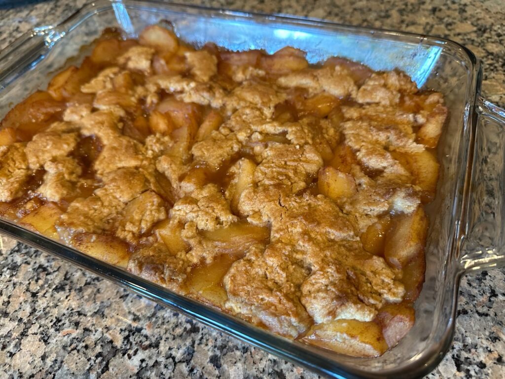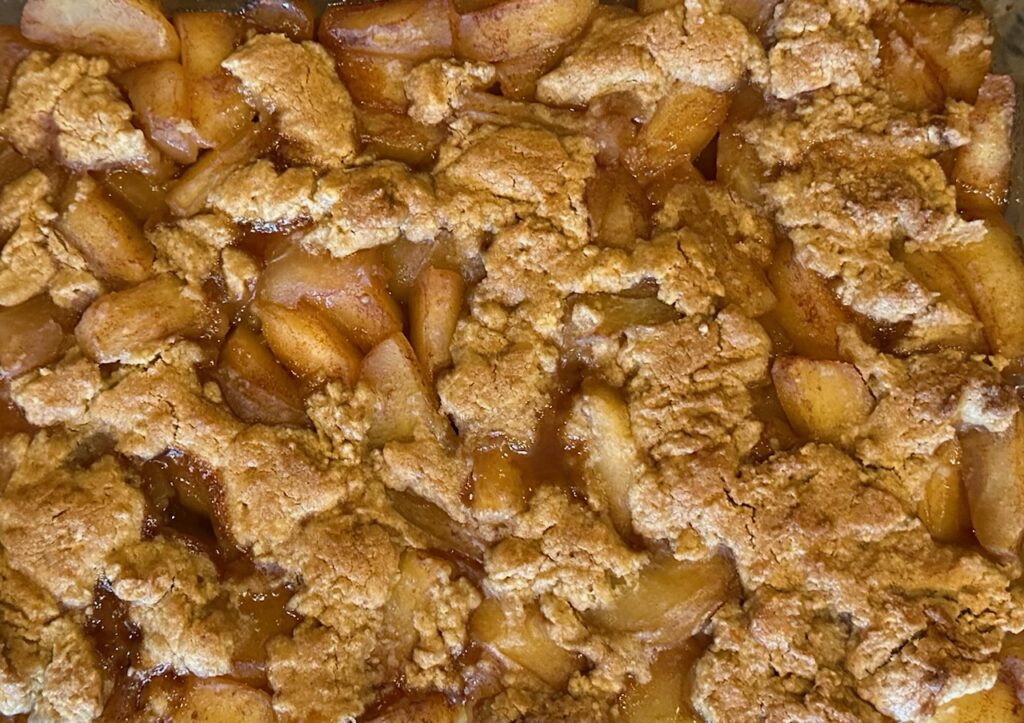 This dessert features buttery rich sweetness atop flavorful, tender apples. It pairs perfectly when warm with vanilla ice cream. It is the quintessential fall dessert.