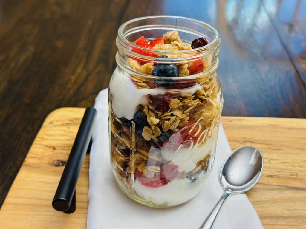 One such recipe that turned out to be a big hit in our house is this Berry Yogurt Parfait. It’s a simple and delicious combination of creamy vanilla yogurt, fresh fruit, and homemade granola.