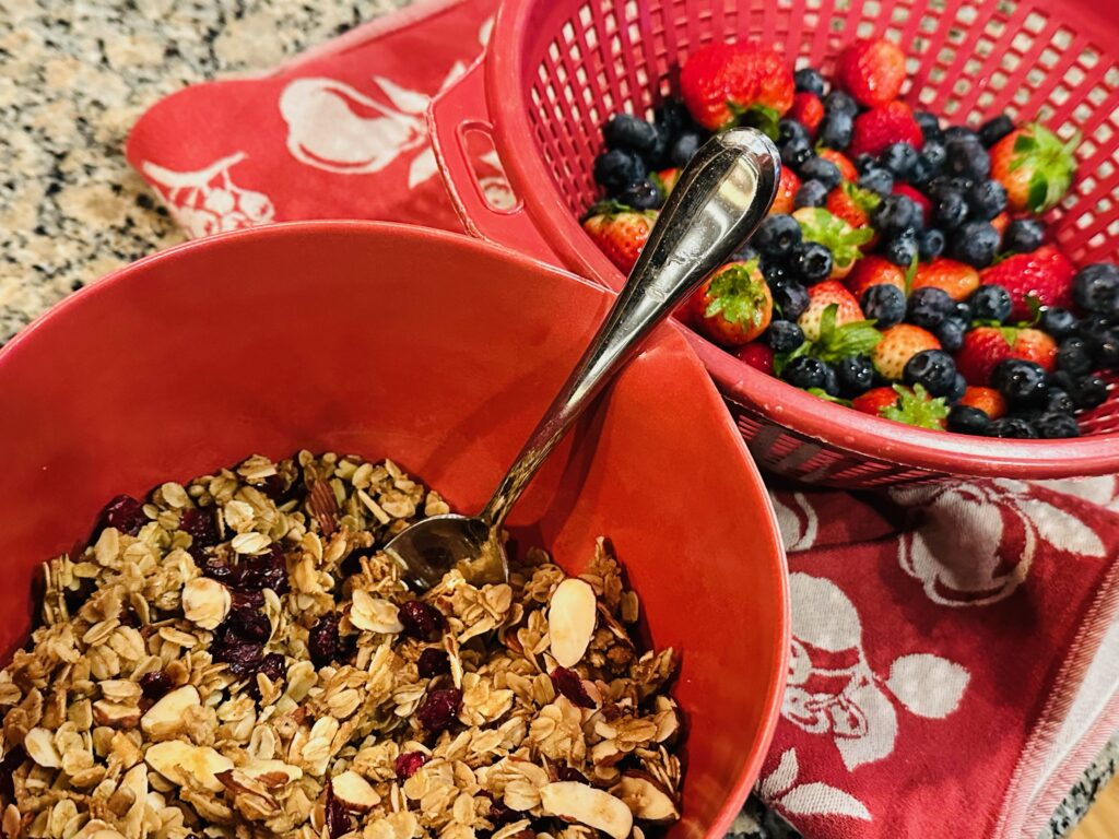 To assemble the parfaits, layer yogurt, berries, and granola in 8 single-serving jars or dishes. Repeat the layers as desired.