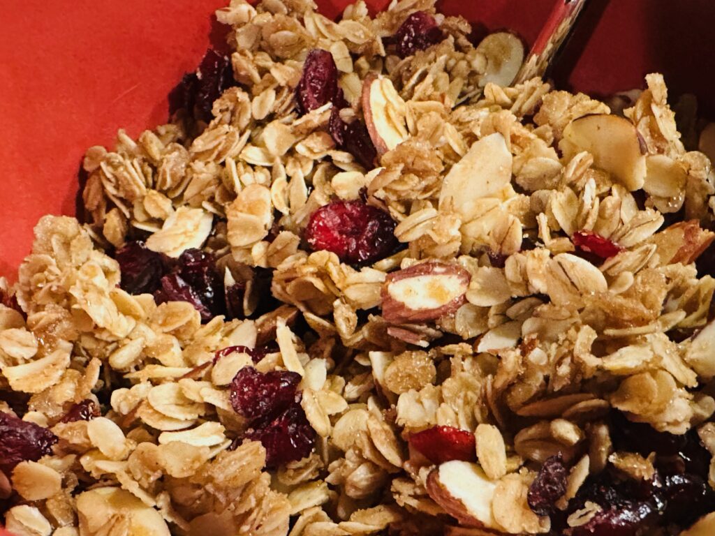 –Preheat the oven to 250°F. In a large bowl, combine the first six granola ingredients.