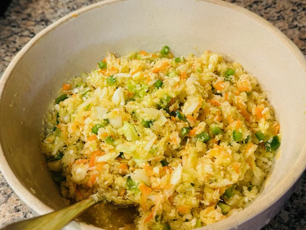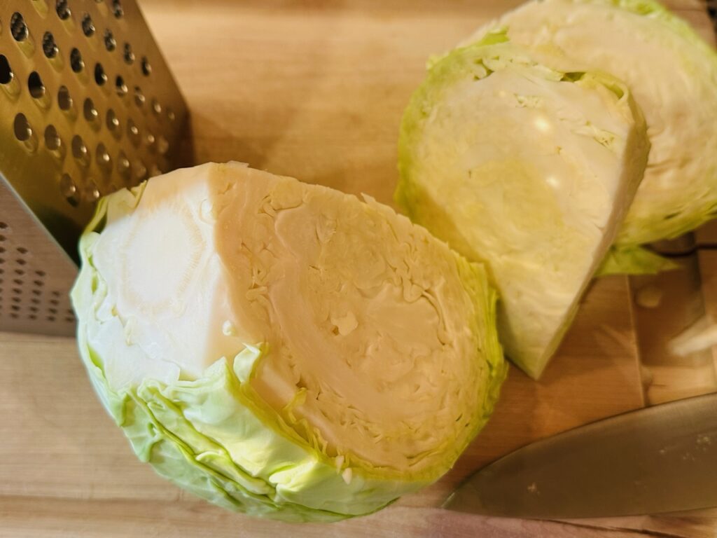 Darcy recalls that her mother’s cooking revolved around the seasons, utilizing fresh produce from the garden. She relayed that her mother’s meals were often related to what fruit or vegetable was in season, and she was able to bring out the best flavors in whatever was available. The Cabbage Salad was no exception.
