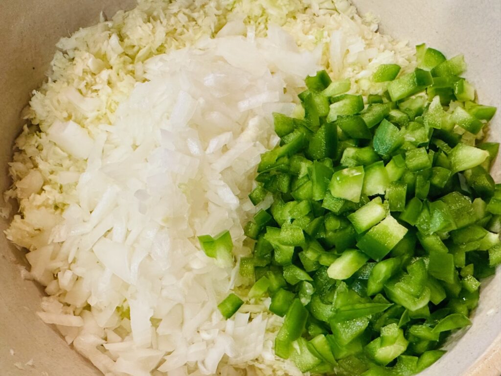 The recipe’s combination of crisp cabbage, sweet green pepper, and onions, topped with a tangy-sweet dressing, creates a delightful balance of flavors.