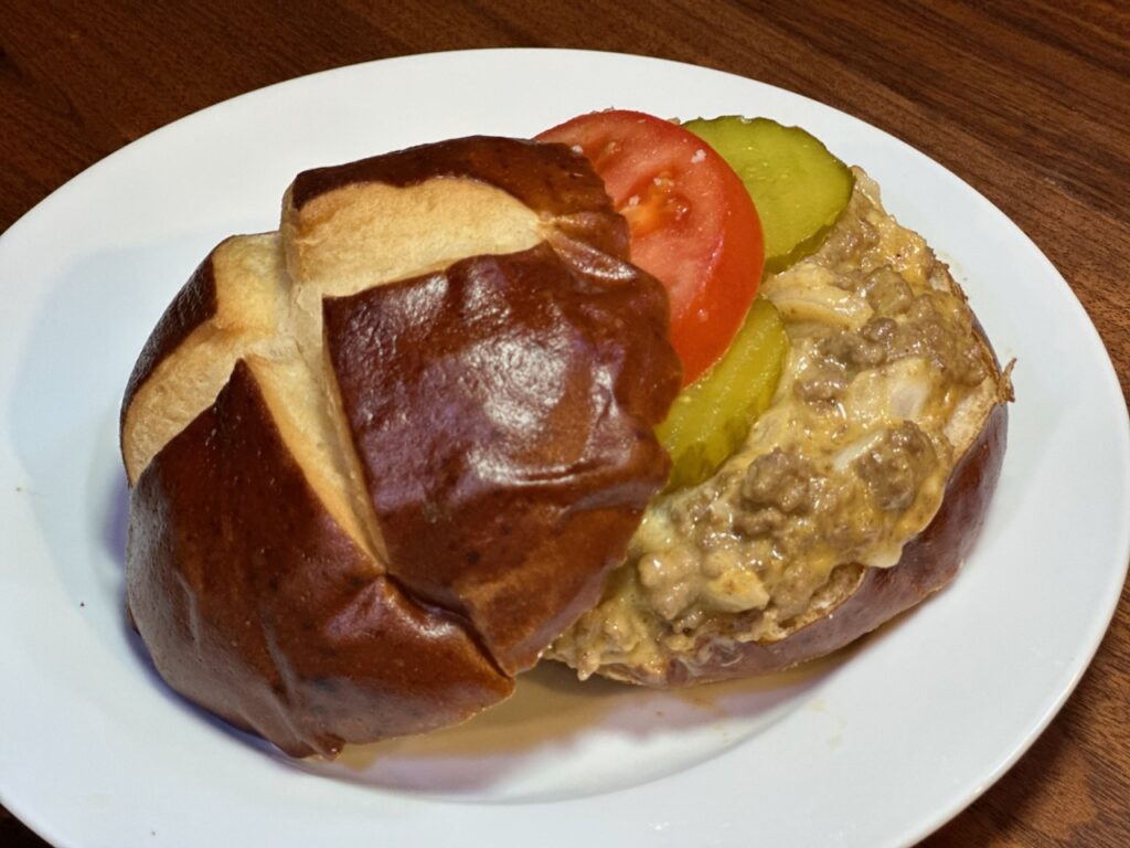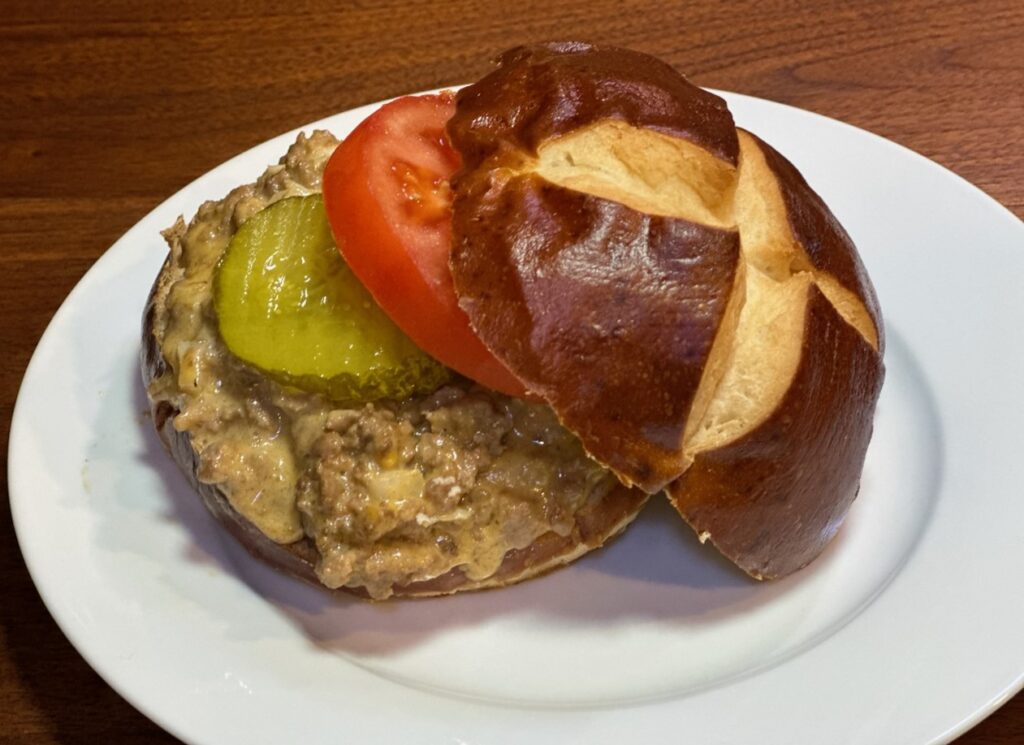 I made her recipe this week, and I can attest that it is a winner. It was easy to prepare, and it really created an elevated sloppy-joe-type sandwich. The cheese and onion add so much flavor, and the pretzel bun makes it seem like a sandwich from a great restaurant.