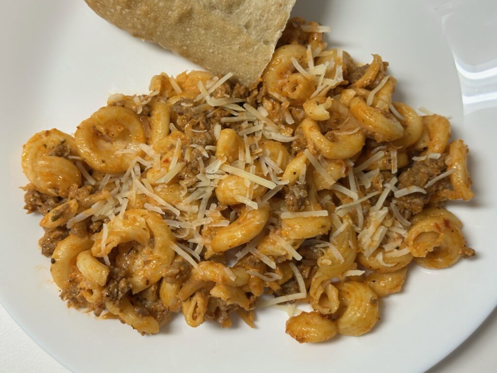 I was introduced to making Bolognese through a meal kit service that I use, and the first time I made it, I couldn’t believe how much I enjoyed the flavor. The recipe starts with cooking down onions, and I believe that sets a tone of flavor for the dish. Then, the use of Italian sausage makes it hearty, and the addition of butter and sour cream at the end adds a richness that truly makes it superior to other Italian dishes.
