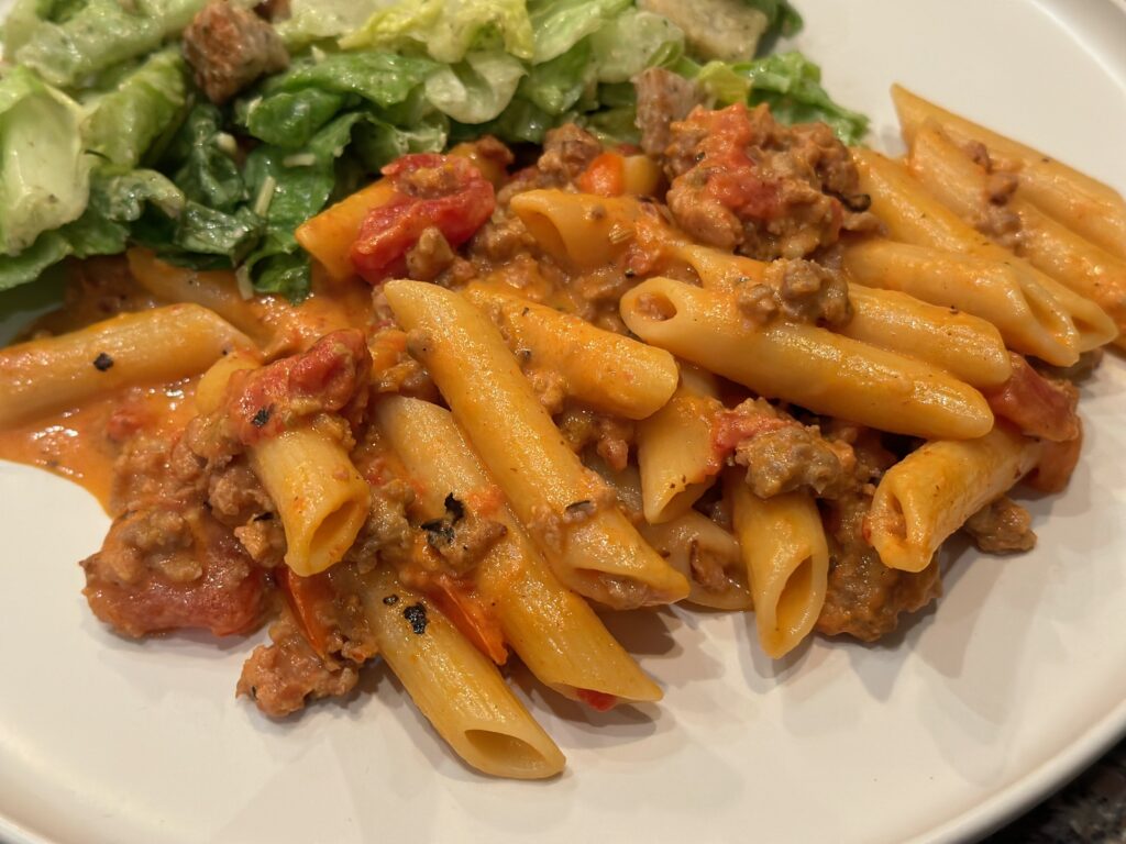 This Spicy Italian Sausage Penne was one of the best pasta dishes I’ve ever tasted. It was spicy while sweet with great depth of flavor. I am certain that I’ve never had pasta in a restaurant that has tasted as good.