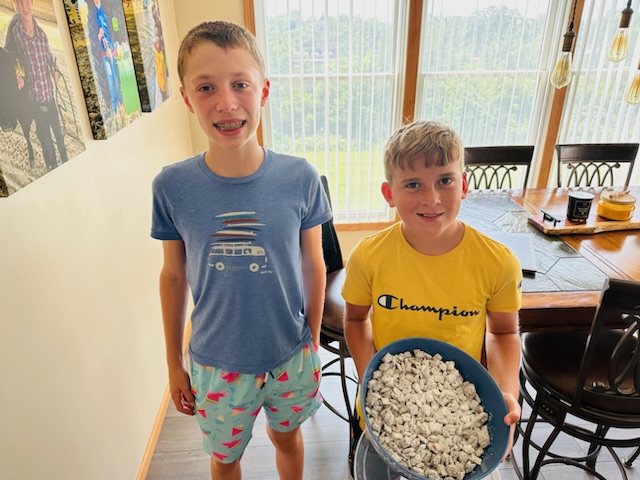When I finished this batch, I had two hungry kids ready to enjoy it (my nephew, Derek, and son, Max). I told them that I needed a photo before they could partake.