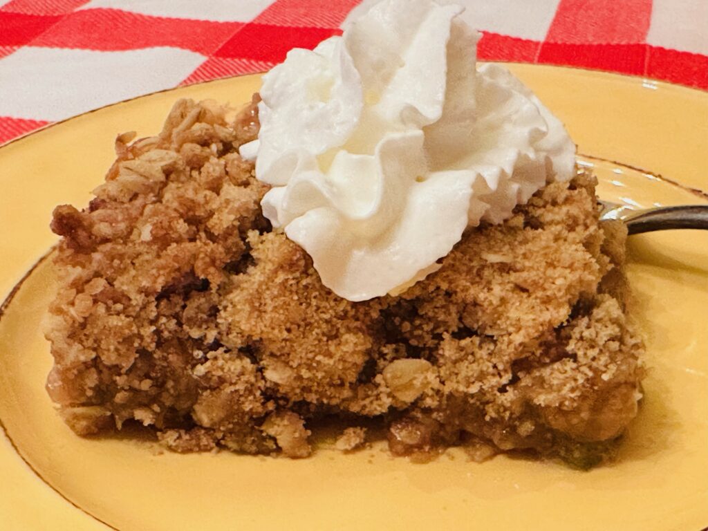 Darcy recalls enjoying warm Rhubarb Crunch topped with what they called a “Bates” scoop—a family name meaning a generous helping—of Schwan’s Vanilla Ice Cream. It was a favorite treat during rhubarb season, and a close second was rhubarb sauce made from the same backyard harvest.