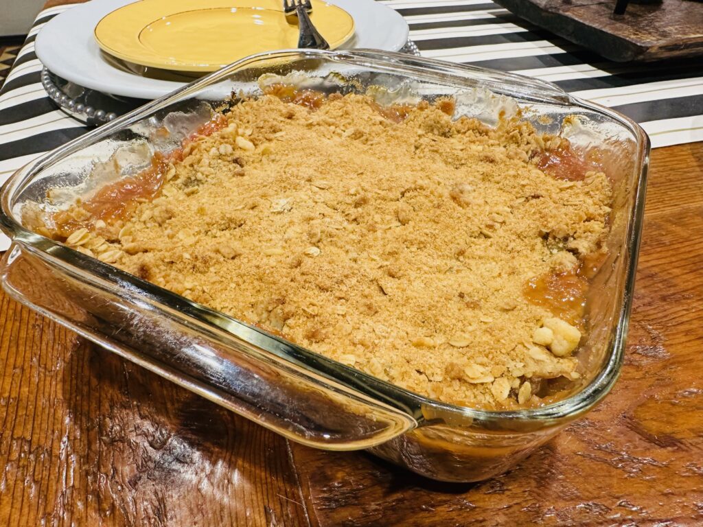 After making it myself, I understand why this dessert holds such a special place in Darcy’s memories. It’s everything you want in a spring dessert: sweet and tart, warm and comforting, with a golden crumble that’s both flavorful and crispy. The dessert is just the right balance of sweet and tangy, complementing the natural bite of the rhubarb perfectly.