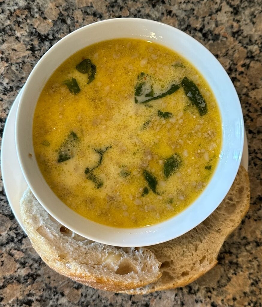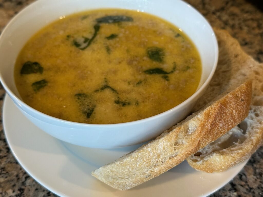 The combination of potatoes, spinach, onions, garlic and red pepper flakes creates a savory, spicy comfort food flavor that is hard to beat. Pair it with some crusty French or Italian bread. We thoroughly enjoyed it that night and the leftover soup got even more flavorful as the days passed.