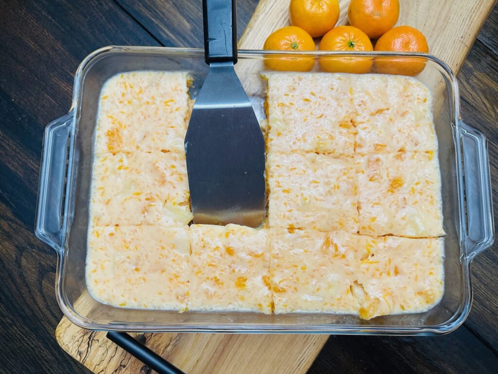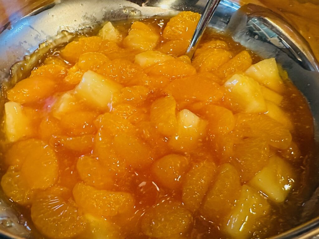 A recipe that stood out to me this time was Tropical Orange Cream Salad. The combination of creamy tapioca pudding, bright orange Jello and juicy fruit makes it the perfect complement to a springtime meal. This salad is light and refreshing, fruity, citrusy and just the right amount of sweet. The Cool Whip gives it that airy, fluffy texture that makes each bite feel like a treat.