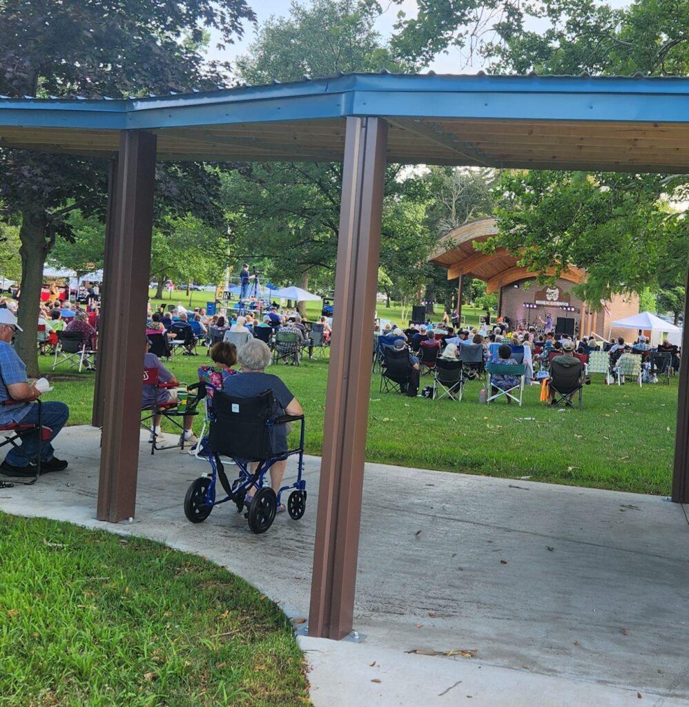 Thanks to former Galvan, Jane Doss, Galva’s Wiley Park has brand-new, covered seating for wheelchair bound fans of the Levitt AMP Sunday concerts. The new covered area is north of the band shelter, with a designated easy access drop-off from an entrance on NW 4th Street.