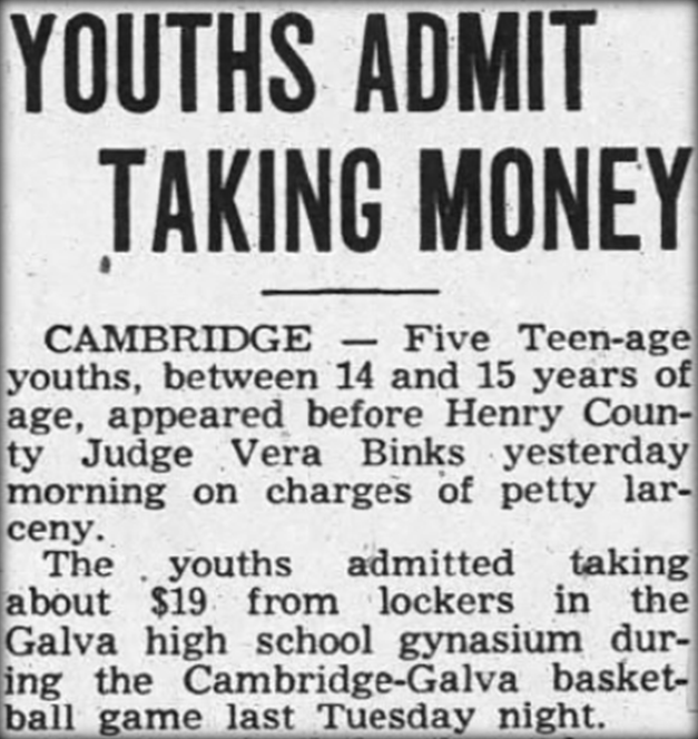 He and four other young juvenile-delinquents decided to take a further step toward a life of crime. Armed with knives, they snuck into the high school and, during the course of a basketball game with Cambridge, they broke into the gymnasium’s lockers in a daring robbery.