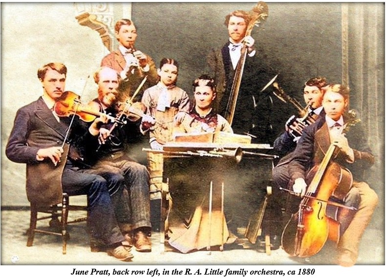 After graduation, June Pratt attended business college and then began working in his father’s business while also serving as assistant postmaster. By the early 1880s, however, young Pratt became the assistant cashier at the First National Bank, located in Library Hall on the corner of Tremont and Third streets. He had a good reputation, was civic-minded, and played in the R. A. Little family orchestra and taught Sunday school.