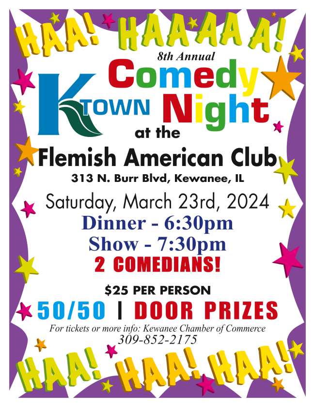 Tickets for the evening can be purchased at the Kewanee Chamber of Commerce office and more information can be obtained by calling (309) 852-2175.
