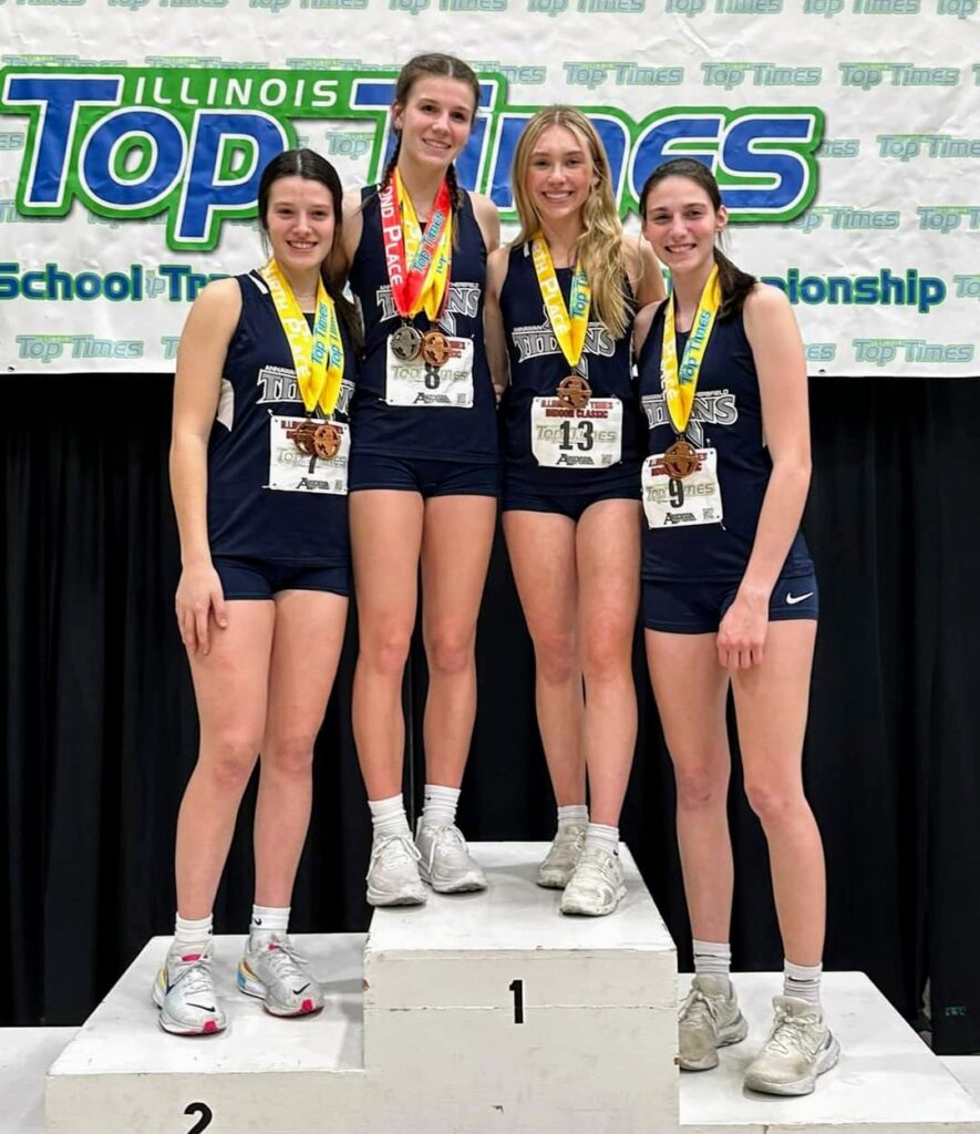 Annawan/Wethersfield senior Kennady Anderson hauled home four medals from the meet. The University of Illinois signee had a runner-up effort in the 800M, two fourth place finishes as part of the 4×400 and 4×800 relays and she placed sixth in the 1600M run.