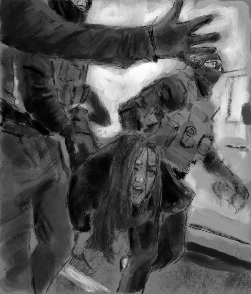 “I feel compelled to depict these atrocities on paper, because it is the only way I can begin to process them, and express my frustration and horror in a way that words cannot,” he said. “I want to sit with each image; drawing allows me to do that.”
