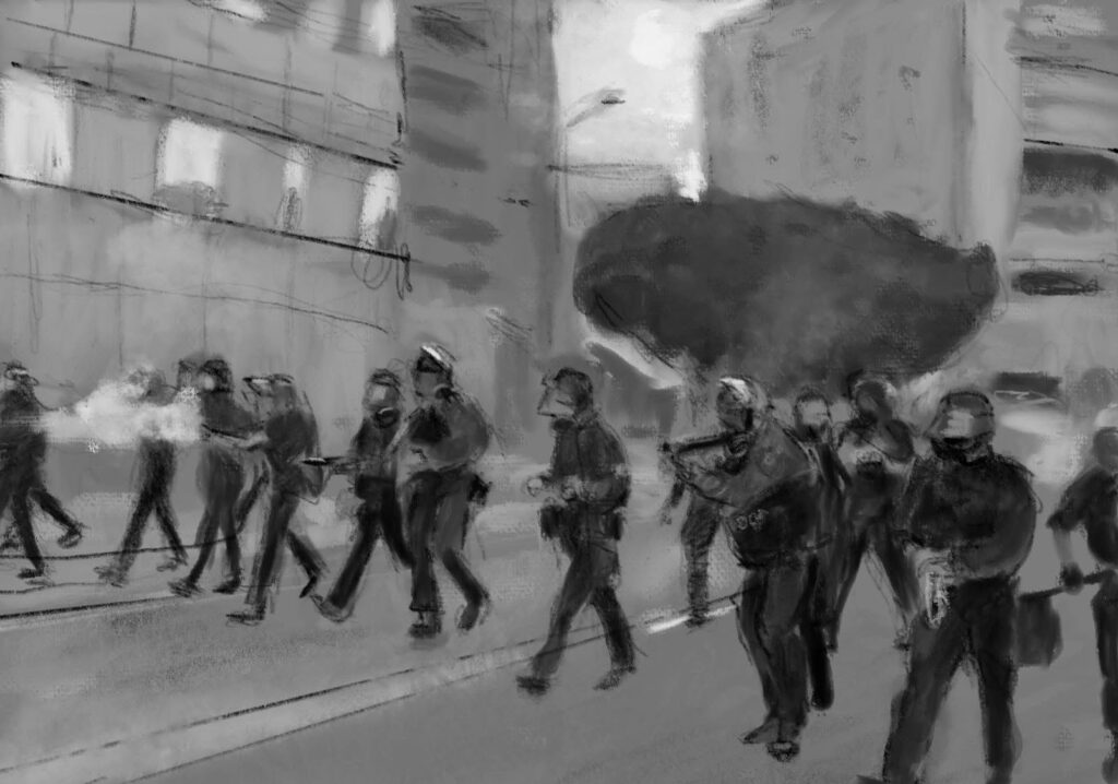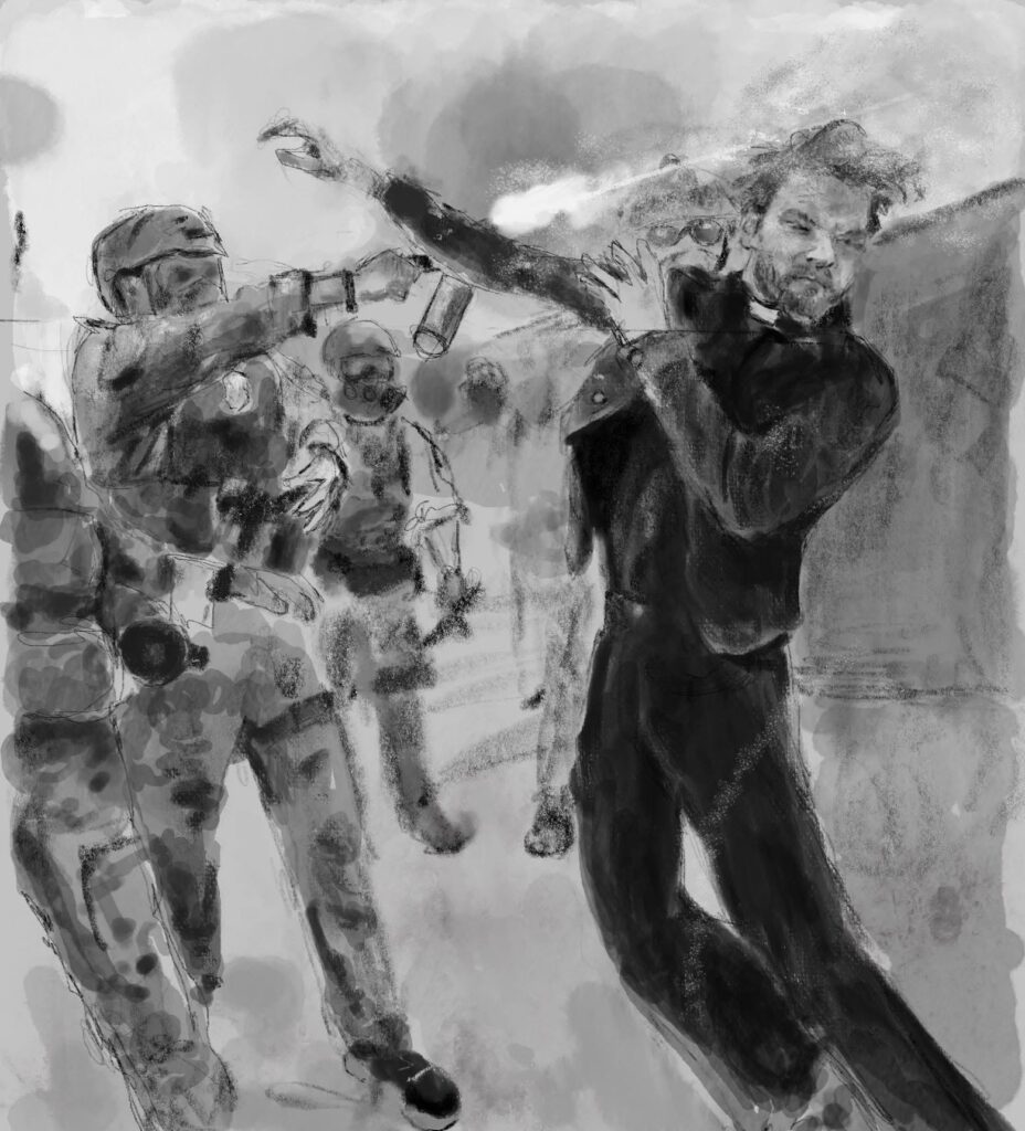 “When this current administration started flooding cities with masked, armed, paramilitary forces, I was obviously horrified,” he said. “I had been depicting the devastation wrought by dictatorial despots in Syria, Gaza and Ukraine, and now American communities were being terrorized.”