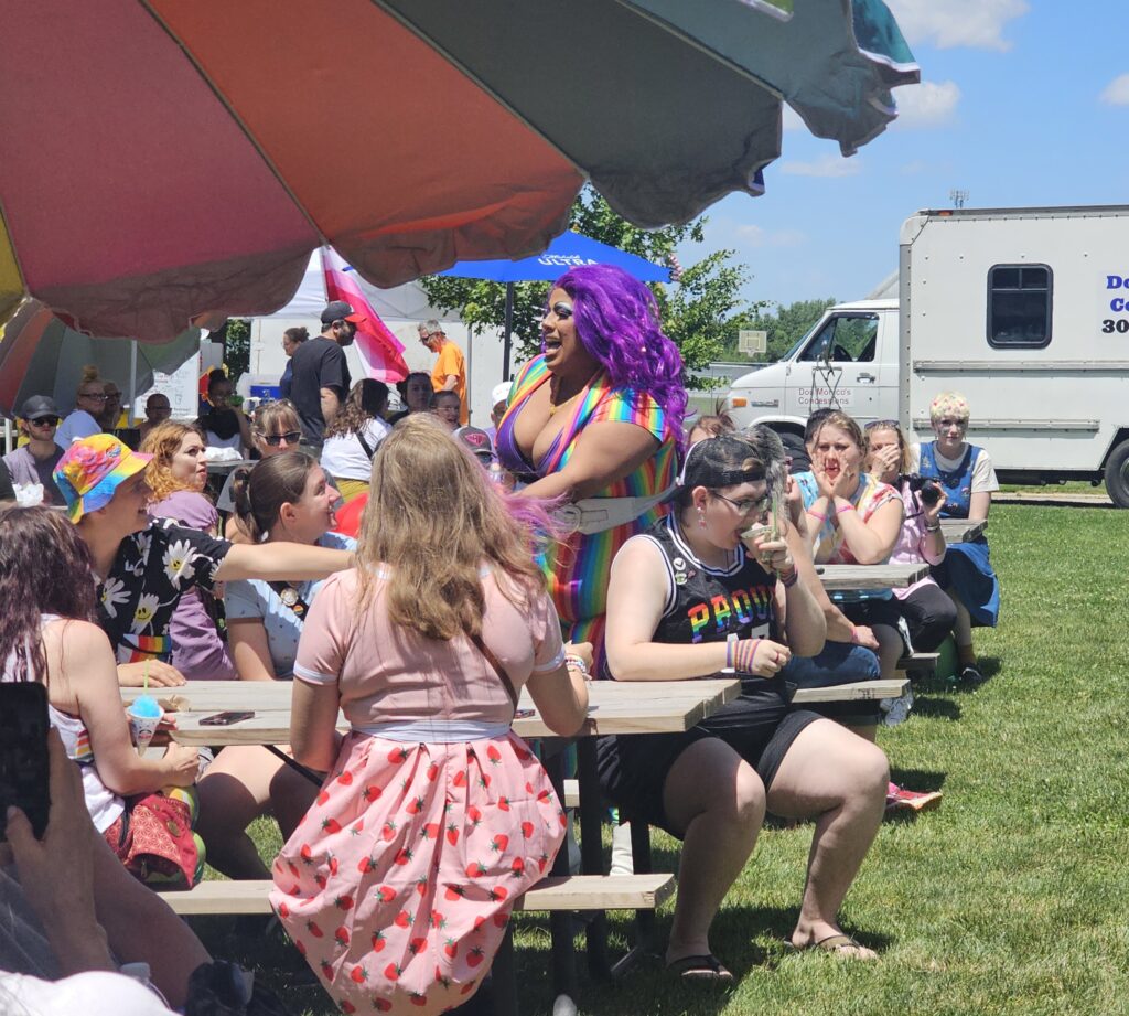 Performing for the day were two drag shows that included the main act of performers from the Sharon ShareAlike Show. Before the main act, Kewanee Mayor Gary Moore took to the stage along with committee members from the Kewanee Commission on Human Relations, who organized the event. Moore addressed the crowd and in his remarks expressed the need for acceptance of diversity in the community and love for your fellow citizens.