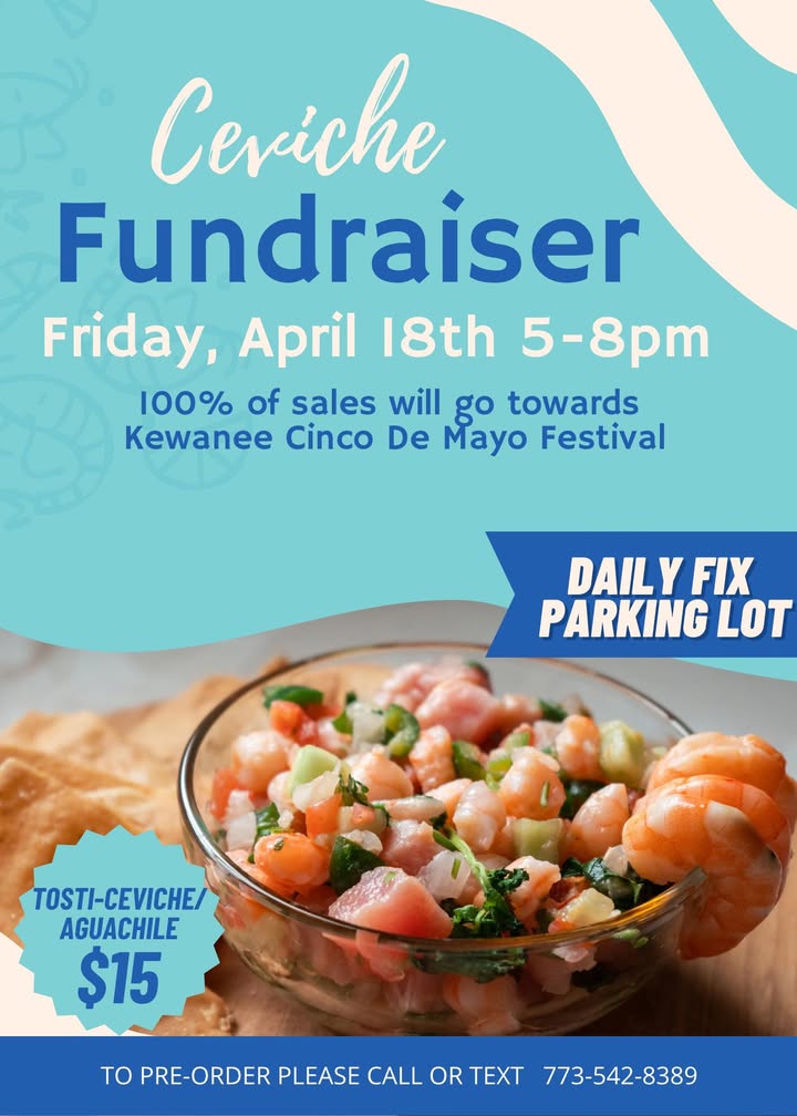 A Ceviche Fundraiser is also being held on Friday, April 18 at the Daily Fix parking lot from 5-8 p.m. One hundred percent of the proceeds will benefit the festival. Tosti-Ceviche Aguachile is being sold for $15. For pre-orders, call or text 773-542-8389.