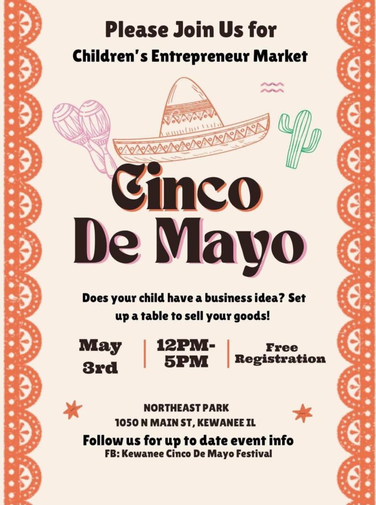 Vendor applications for the festival remain open, with a $40 registration fee for adult vendors and free registration for children entrepreneurs. The deadline to register is April 18. More details can be found on the festival’s Facebook page: Kewanee Cinco De Mayo Festival or by email.
