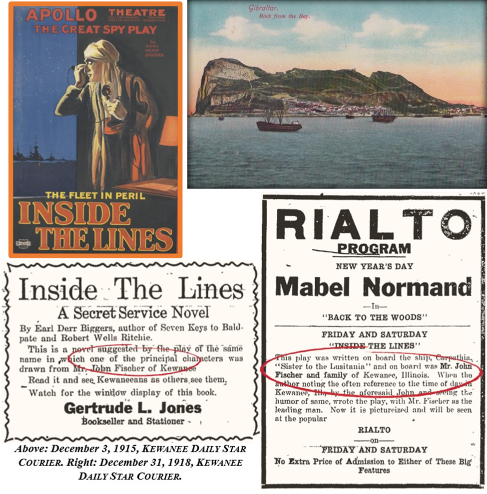 But most important to our story, the CARPATHIA later hosted Kewanee banker John Fischer, his wife, Etta, and their two sons, Emmons and Lyle, on what they called their “grande tour.” And it was on this tour that the fortunes of Fischer intertwined with those of Earl Derr Biggers, who later authored the Charlie Chan Mysteries.