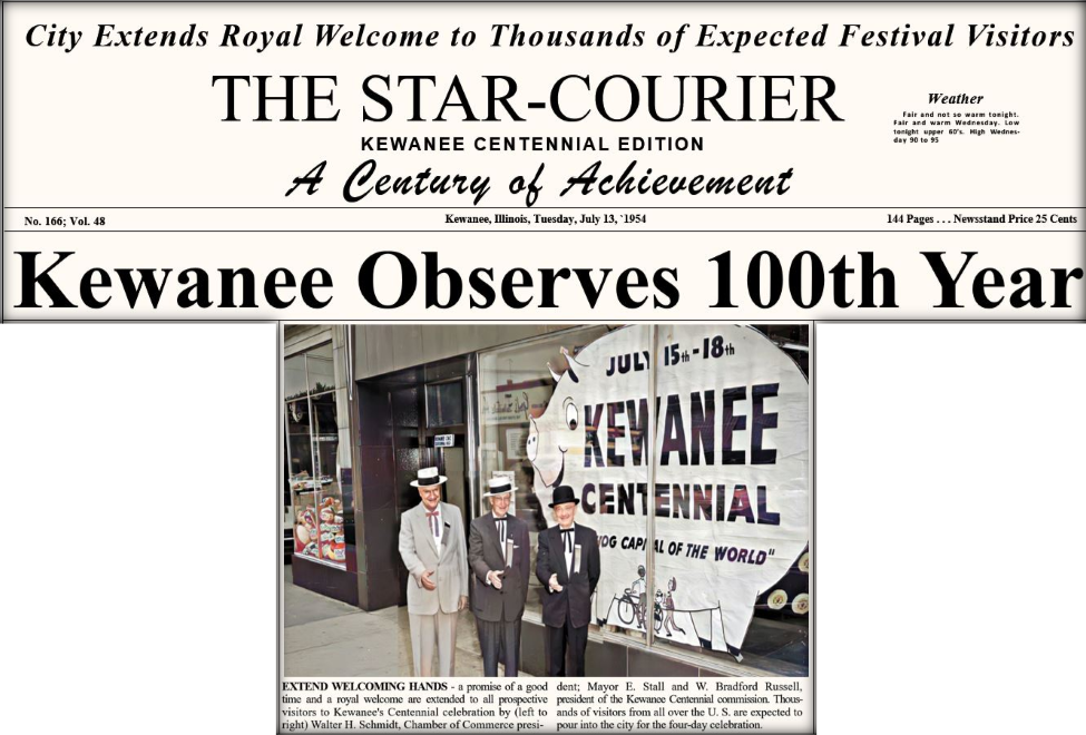 In December 1952, a Kewanee newspaper editorial reminded us that there was a centennial coming up. After deciding which year marked the hundredth birthday of our hometown, committees were formed and planning began for a four-day celebration in July 1954.