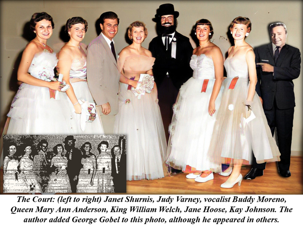 The ball began at 9 p.m. Saturday evening at the Armory. In addition to Gobel, Lew Diamond’s Orchestra and vocalist Buddy Moreno entertained the 3,000 attendees at the gala. But Gobel’s act stole the show, and then King Welch and Queen Anderson were crowned at the ball by Gobel.