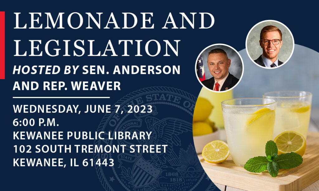 Kewanee, Ill.- Area residents are invited to join State Rep. Travis Weaver and State Sen. Neil Anderson at the Kewanee Public Library on Wednesday, June 7th from 6-8pm.