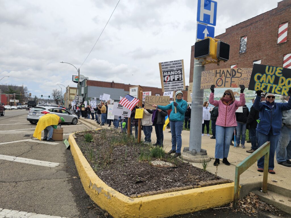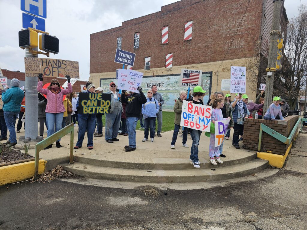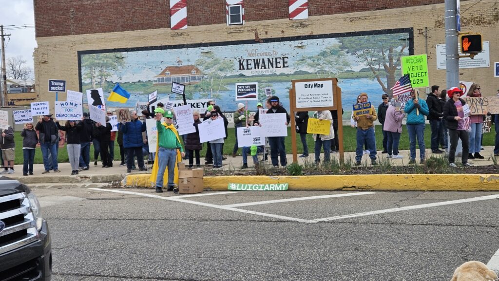 KEWANEE, Ill. — More than 125 residents gathered Saturday on the sidewalk that lines Main Street to be a part of the nationwide “Hands Off” movement to protest actions taken by President Donald Trump. The event was one of over 1,200+ demonstrations held across all 50 states and attended by millions of Americans.