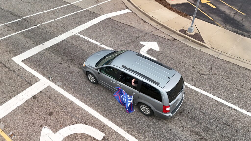 Some drivers showed their support for President Trump by waving flags from their vehicle. [Drone images captured by Mark Lindsey, Bird’s Eye View]