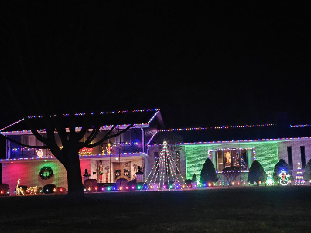 On the north side of town, the park lights came on at dusk and hundreds of cars caravaned through the drive, delighting at the handcrafted displays, including a special display at the front of the park honoring the late Brock Tumbleson, who started the Northeast Park lighting.