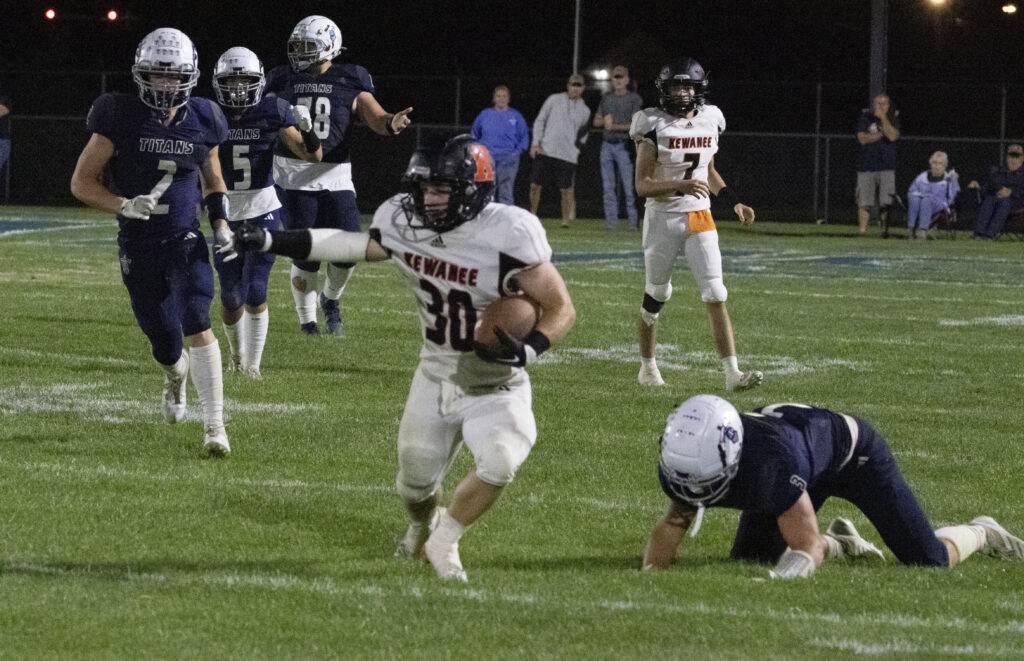 Ace LaFollette heads up field for the Boilermakers. Mikey Gamez of The Kewanee Voice Student Journalism Program took these photos of the Kewanee vs. Monmouth-Roseville football game Friday. The Boilers fell to Mon-Rose, 24-21.