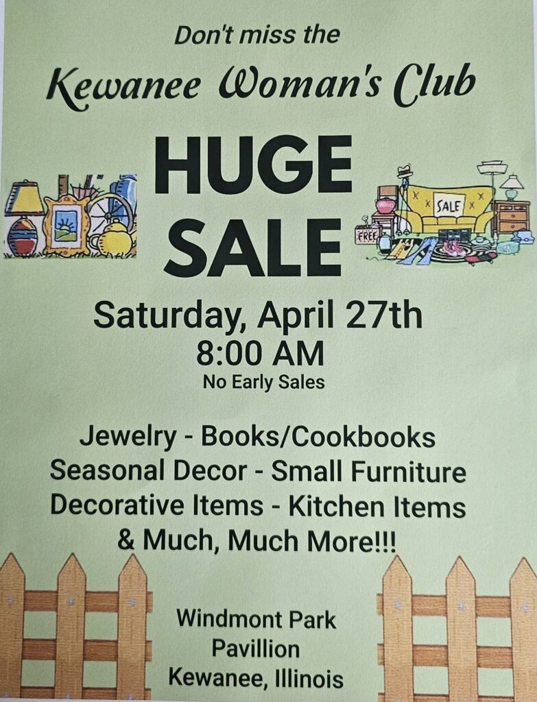 The sale will begin at 8 a.m. and the proceeds raised will go towards helping the Kewanee Woman’s Club to fund local organizations.