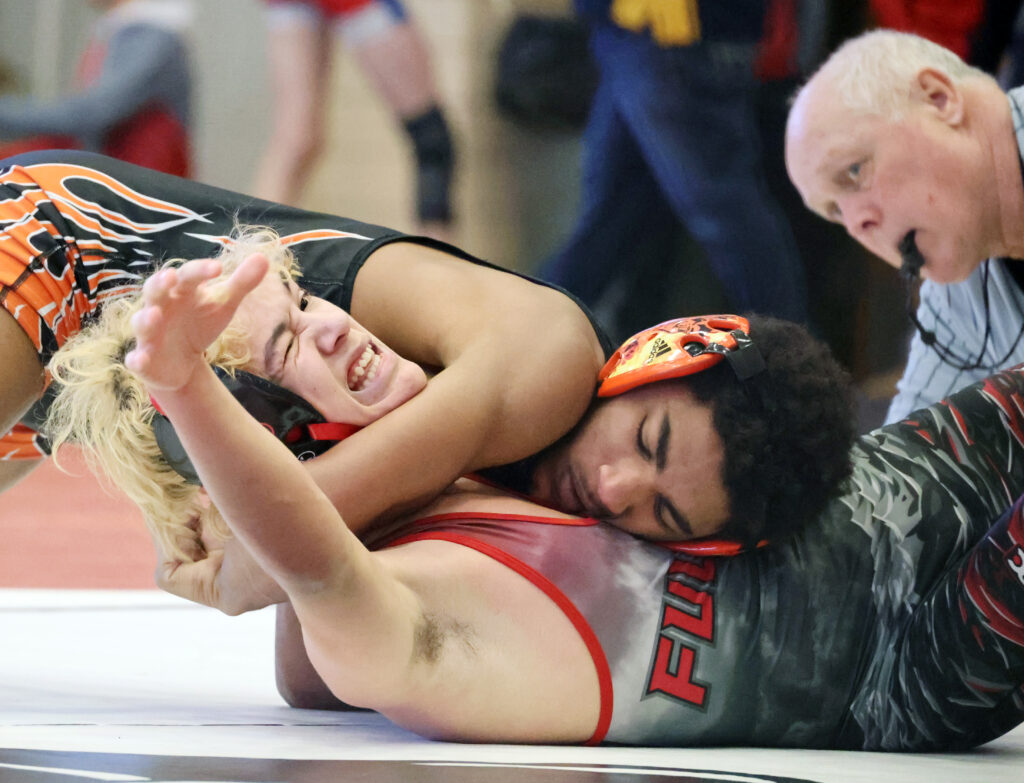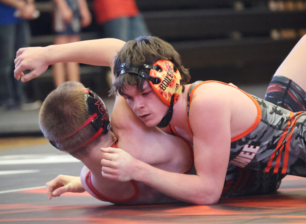 Area wrestlers hit the mat at 9 a.m. and fought until nearly 5 p.m. Before the championship matches, Kewanee honored the day’s best wrestlers with its “Walk of Champions,” during which competitors walked across the mats to shake hands with their fellow finalists.
