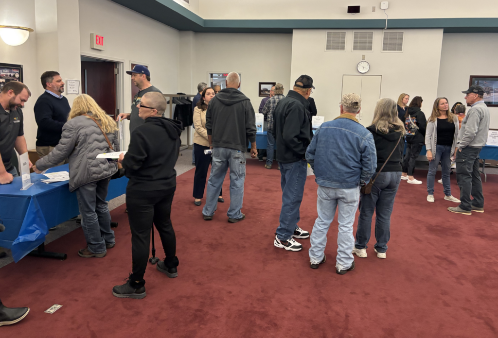 But inside, there were no demonstrations, only people asking questions. Representatives of all the IAW divisions — engineering, lead service line replacement, rates and so on — were on hand to answer those questions.