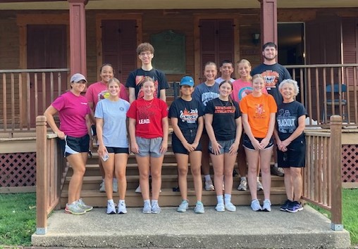 Eleven Key Club members, club sponsor Amy Miler, Jeff and Pam Johnson from the Kewanee Kiwanis Club, all withstood the warm temperatures to stain the exterior on Sunday, Aug. 4.