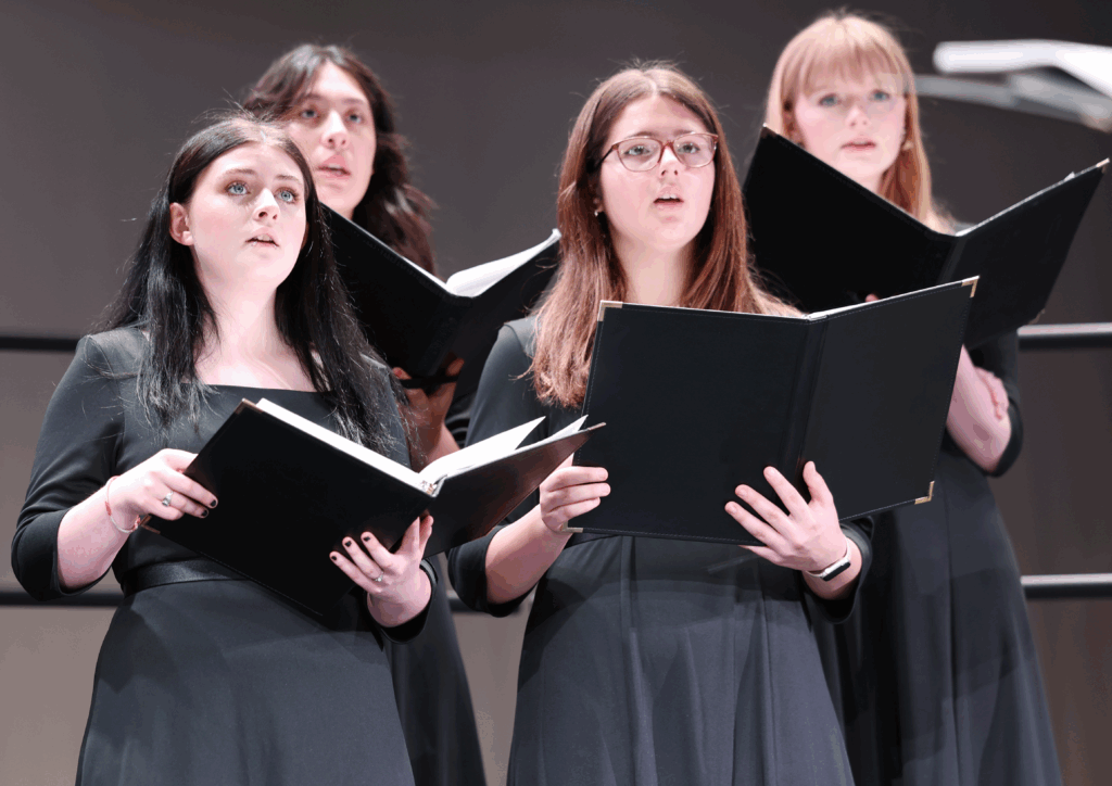 Singing with the choir were Khloe Yelm and Olivia Mitchell in the front row; Nayeli Leon and Emily Witte in the back row.