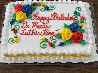 Etta LaFlora, executive director of the Sunshine Community Services Center, is thanking participants who turned out Monday, Jan. 20 for the Martin Luther King, Jr. Birthday Celebration at the library.