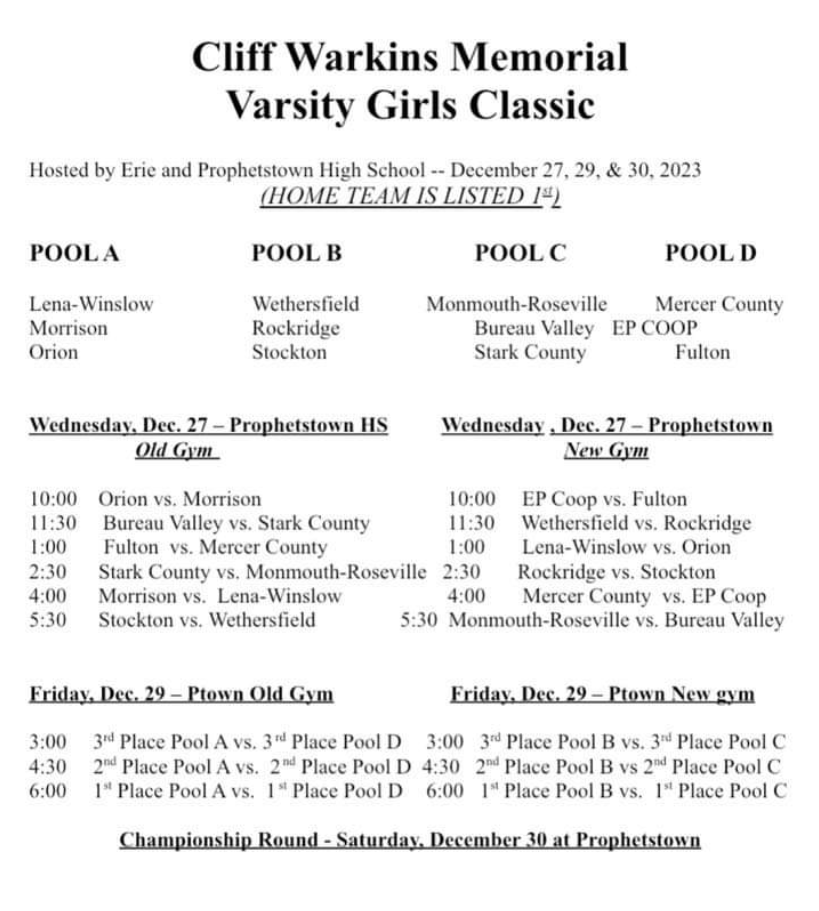 Wethersfield will resume play on Dec 27 at the Cliff Warkins Memorial Varsity Girls Classic. The Lady Geese will play Rockridge at 11:30 am and Stockton at 5:30 pm.