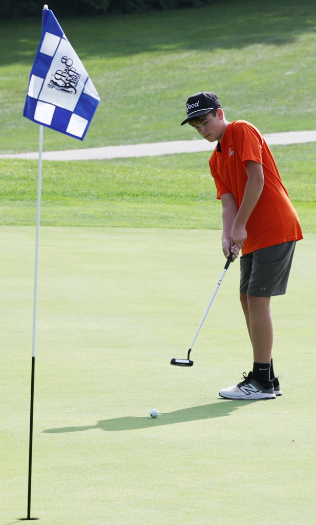 Kewanee’s Reid Nichols attempts a birdie putt during Thursday’s match. [Photo courtesy of Kewanee High School Athletic Department]