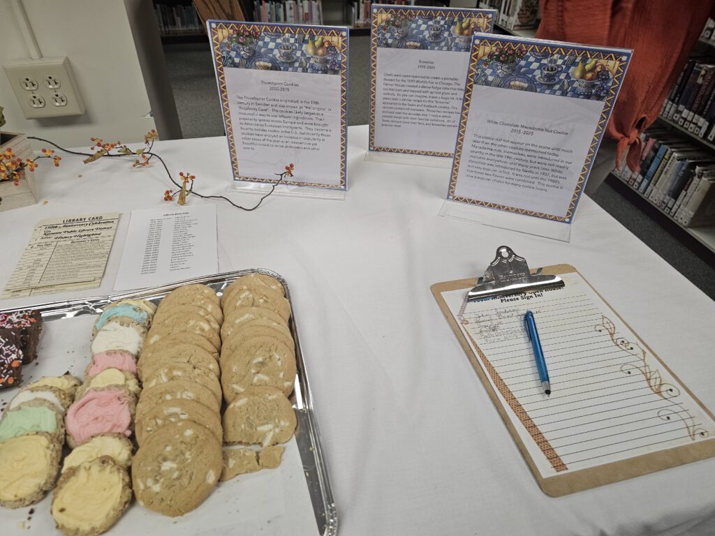 On the main floor of the library, Friends of the Library members, such as Barbara Morrison, greeted guests. Historical displays were placed around the library including a timeline of the library and its renovations over the years as well as a list of former library directors.